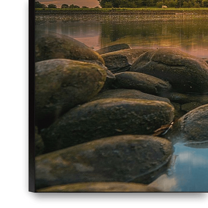 Ihre gewählte Kunst auf Leinwand, gespannt in einem Aluminiumrahmen. Schnell und einfach austauschbar für eine frische Ausstrahlung und ganz nach Ihren Wünschen.