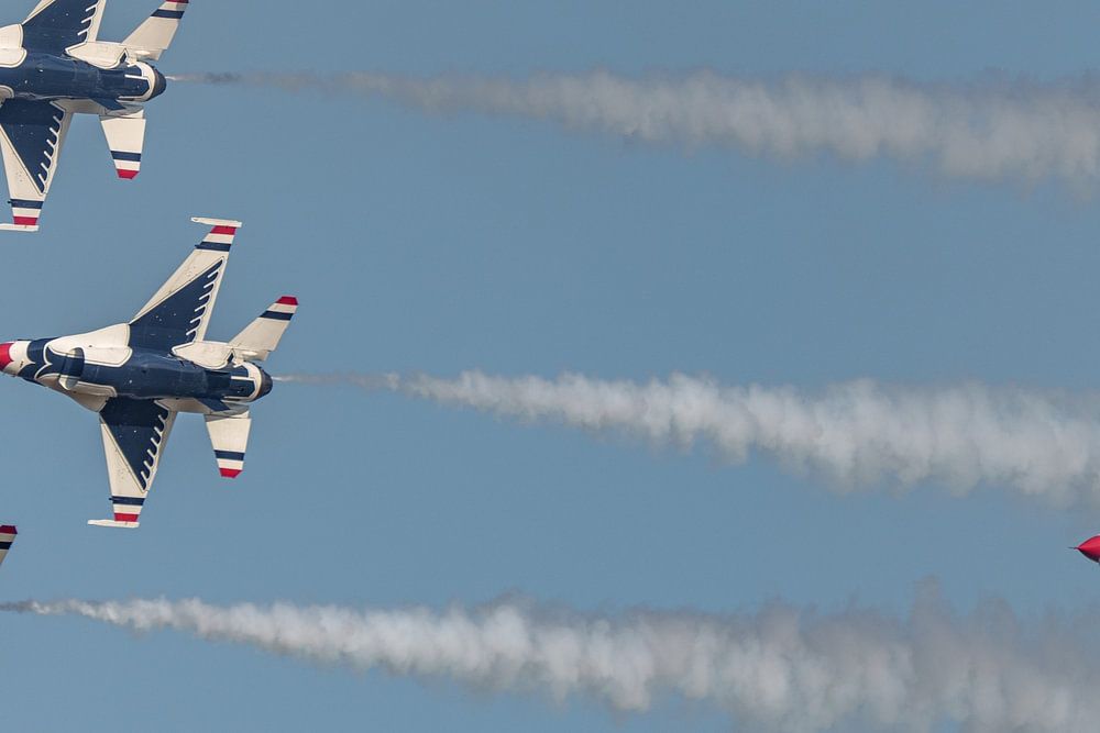 Dieses Foto wurde am 13. Oktober 2023 während der Wings over Houston Airshow auf dem Ellington Field aufgenommen. Das Besondere an diesem Foto ist, dass die Thunderbirds einen Teil der Show mit 7 Flugzeugen geflogen sind.