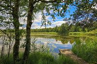 Bestelle das Foto Uferlandschaft Riedsee mit Holzsteg im Wurzacher Ried von BlattArt - Christine Horn als Reproduktion auf Leinwand, Alu-Dibond, als Poster, Fototapete oder Acrylglasbild.