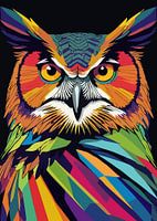 Bestelle dieses abstrakte Wandbild Uhu Pop Art von MIROKKU als Reproduktion auf Leinwand, Alu-Dibond, als Poster, Fototapete oder Acrylglasbild.