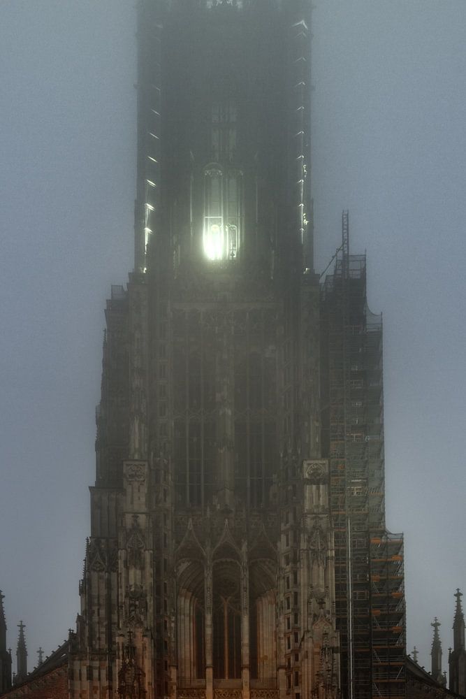 Ulmer Münster im Winter 2020 ohne Weihnachtsmarkt vor der Kirche. Einmalig, dass der Weihnachtsmarkt nicht da ist, durch Corona