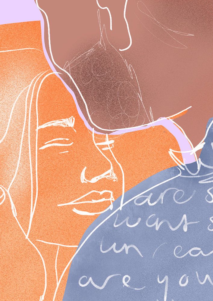Das kann man in der Strichzeichnung der Frau sehen. Aus der Perspektive des Mannes.
