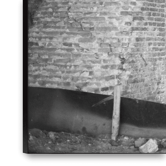 Bei den Arbeiten unter dem alten Viadukt der Noorderbrug, in der Nähe des Lage Frontenparks, kamen die alten Festungsmauern zum Vorschein. Mit etwas Phantasie kann ein trauriger Smiley-Smiley in den beiden runden Fenstern und dem Halbkreisbogen gesehen werden :(