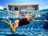 Bestelle dieses moderne Wandbild Unterwasserschwimmer mit moderner Architektur von Jan Keteleer als Kunstdruck auf Leinwand, Alu-Dibond, als Poster, Fototapete oder Acrylglasbild.