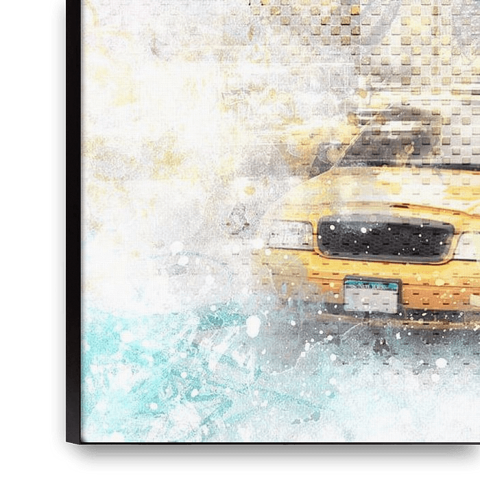 Malerisch wirkende Passagen, moderne Farbakzente und grafische Nuancen finden eine einzigartige Kombination. Knallige Wasserfarben und die typische Straßenszene unterstreichen die urbane Dynamik. Hauptbestandteil dieses Werks ist eine nächtliche Ansicht der Skyline von Lower Manhattan mit beleuchteten Hochhäusern.