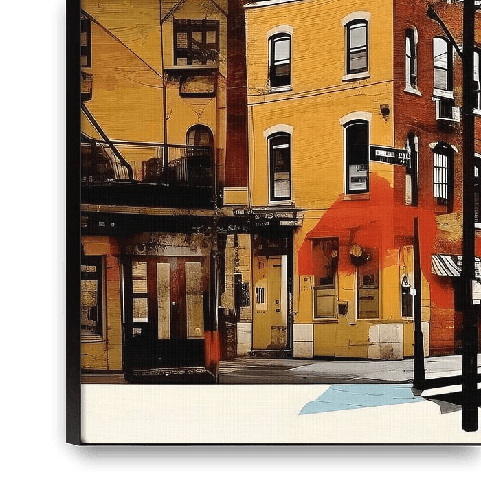 "Urban Colour Palette" ist eine lebendige Darstellung der städtischen Dynamik, eingefangen in einer Explosion von Farben und Formen. Dieses Kunstwerk zeigt den einzigartigen Geist der Stadt, wo Tradition und Moderne in der Architektur und dem schnellen Tempo des täglichen Lebens verschmelzen.
