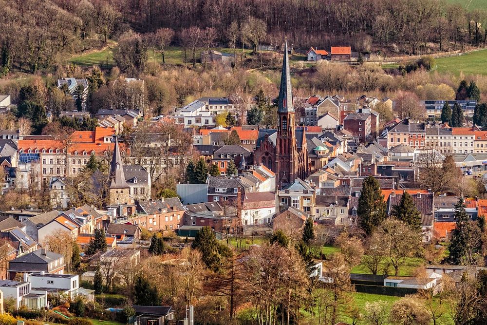 Vaals vom Wilhelmina-Turm am Drielandenpunt aus gesehen.
