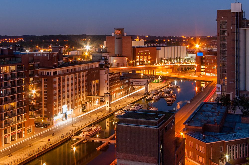 Blick auf die Grachtenschüssel in Leuven am Abend