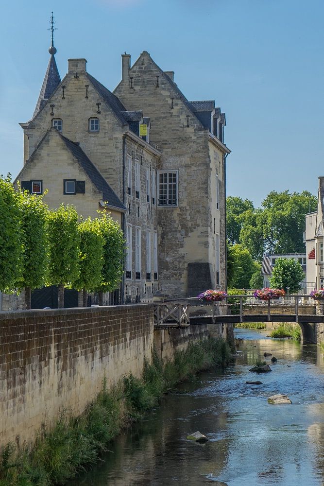 Eine schöne Aussicht in Valkenburg an einem Sommertag. Die schönen Blumen im Vordergrund verleihen diesem Sommerfoto eine zusätzliche Dementia. Valkenburg von seiner schönsten Seite!
