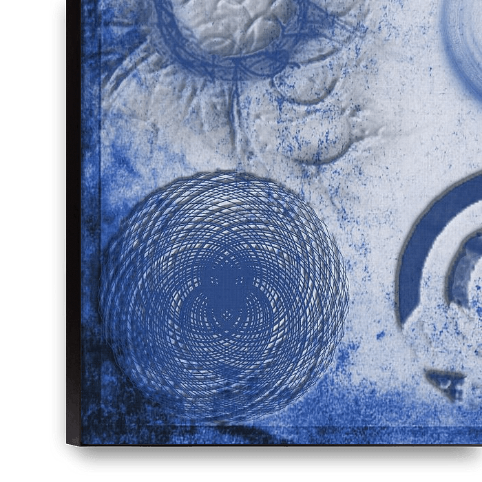 Variationen über einen Kreis, blau. Quadratische Zusammensetzung. Auch in anderen Farben erhältlich.