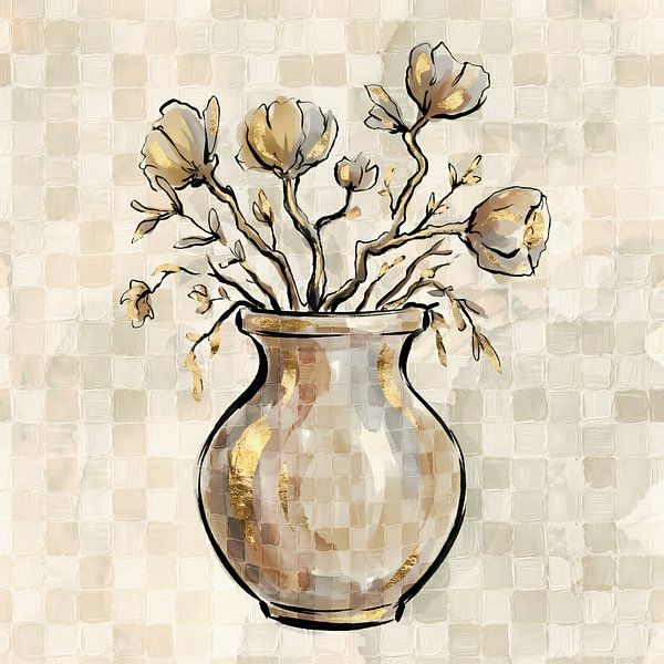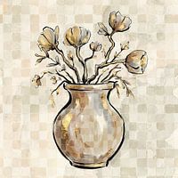Ein Stillleben mit Mohnblumen – Kunstwerk in Goldgelb und Braun. Mit diesem Stillleben an deiner Wand holst du dir den Sommer ins Haus!