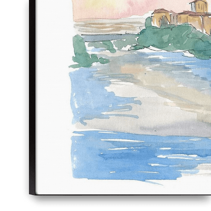 Bestelle diese Malerei Ventimiglia Ligurien Italien Panorama mit Fluss Roia von Markus Bleichner als Reproduktion auf Leinwand, Alu-Dibond, als Poster, Fototapete oder Acrylglasbild.