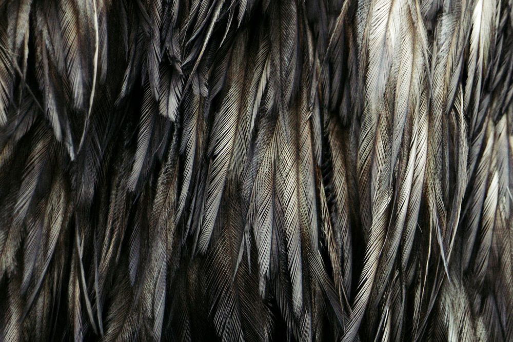 Die Federn eines Emu aus nächster Nähe. Abstraktes Bild von Federn.