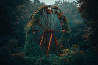 Ein vergessenes Karussell, umhüllt von üppigem Grün und mystischer Nebelstimmung, zieht den Betrachter in eine andere Welt. Die rostigen Strukturen erzählen Geschichten vergangener Freude und Abenteuer. Ideal für das Wohnzimmer, wo es als eindrucksvolles Statement-Piece für kreative Gespräche sorgt und einen Hauch von Nostalgie verleiht.
