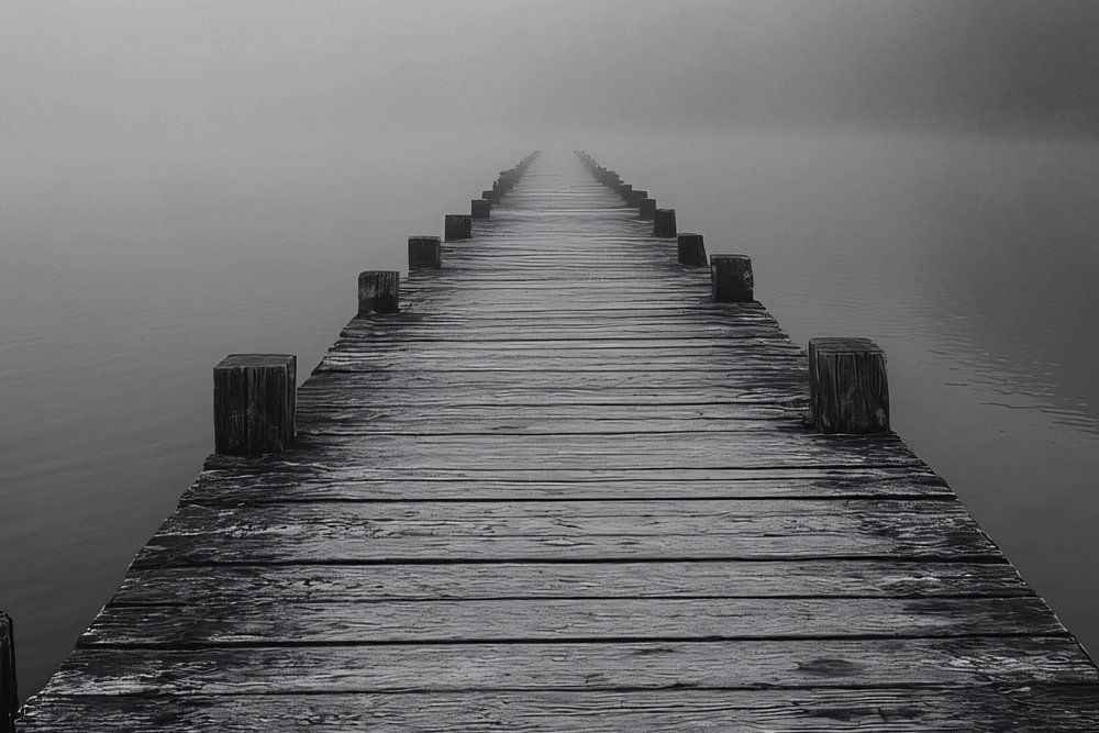 Dieses Design zeigt einen verlassenen Holzsteg, der im Nebel zu verschwinden scheint und ein Gefühl der Ruhe und des Geheimnisses hervorruft. Die monochrome Farbpalette verstärkt den minimalistischen Stil und unterstreicht die Einfachheit der Komposition. Die Reflexion des Wassers und die dunstigen Konturen verleihen dem Bild eine ruhige, fast meditative Stimmung. Dieses Kunstwerk eignet sich perfekt als Wanddekoration für Liebhaber ruhiger Landschaften und passt gut in moderne und minimalistische Innenräume, insbesondere in Schlafzimmern oder Arbeitsräumen, in denen eine ruhige Atmosphäre gewünscht wird. Das Design ist zeitlos und zeitgemäß zugleich.