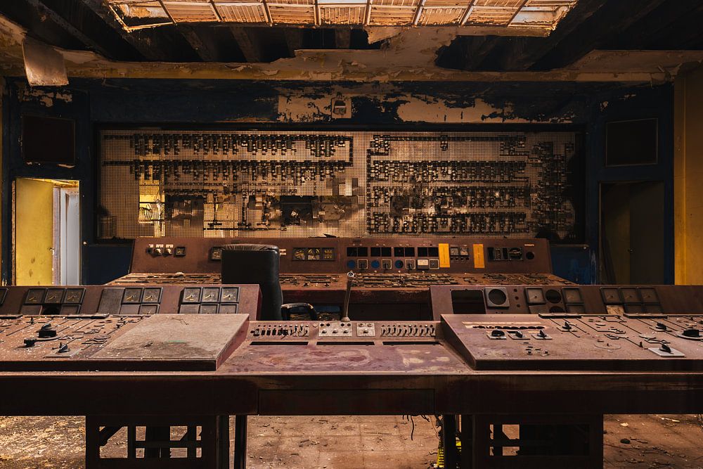 Tauchen Sie ein in die faszinierende Welt der Industrienostalgie mit diesem stimmungsvollen Foto des verlassenen Kontrollraums im ehemaligen Kraftwerk Akers. Der Raum atmet Geschichte, mit verwitterten Paneelen und einem Dach, an dem die Zeit ihre Spuren hinterlassen hat. Das warme, weiche Licht wirft einen goldenen Schimmer auf die vergessenen Knöpfe und Schalter und schafft so eine faszinierende Balance zwischen Verfall und Schönheit. Dieses Kunstwerk fängt nicht nur die architektonischen Details ein, sondern auch das Geheimnis einer vergangenen Ära, als dieser Raum das pulsierende Herz des Kraftwerks war. Perfekt für Liebhaber von urbanen Erkundungen, Industriefotografie und einem Hauch von melancholischem Charme in Innenräumen.