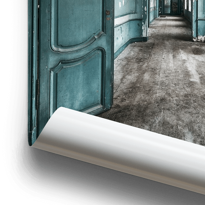 Bestelle das Foto Verlassener Urbex-Korridor von Ingrid Van Damme fotografie als Reproduktion auf Leinwand, Alu-Dibond, als Poster, Fototapete oder Acrylglasbild.