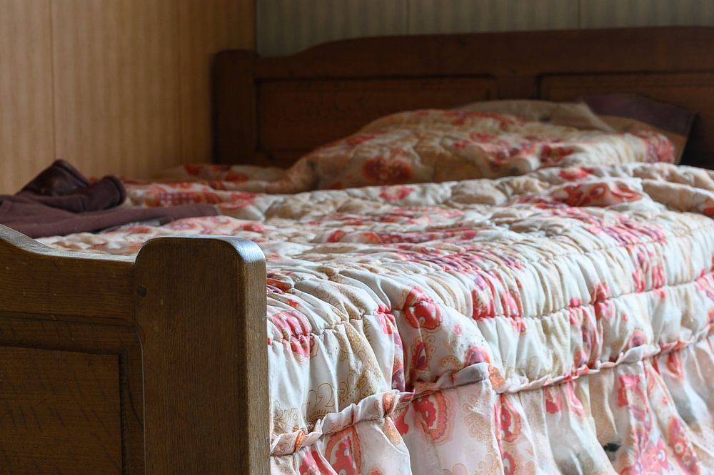 Dies ist eines der Schlafzimmer in einem verlassenen Haus in der Nähe eines Bauernhofs. Obwohl alles noch da ist, hat hier schon lange niemand mehr geschlafen.