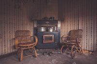 Bestelle dieses Stilleben Verlassenes Wohnzimmer von On Your Wall als Reproduktion auf Leinwand, Alu-Dibond, als Poster, Fototapete oder Acrylglasbild.