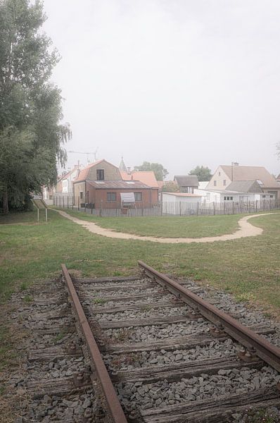 Dieses Foto zeigt ein friedliches Stück belgischer Landschaft, das an einem besonderen Ort in Belgien aufgenommen wurde. Die alte Eisenbahnlinie im Vordergrund führt den Blick auf das Dorf und verleiht dem Bild eine nostalgische Atmosphäre. Umgeben von Grün, charmanten Häusern und leichtem Nebel, strahlt dieser Ort Ruhe, Geschichte und…