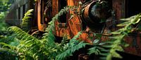 Verrosteter Zug mit Farnen – Naturlich von Poster Art Shop