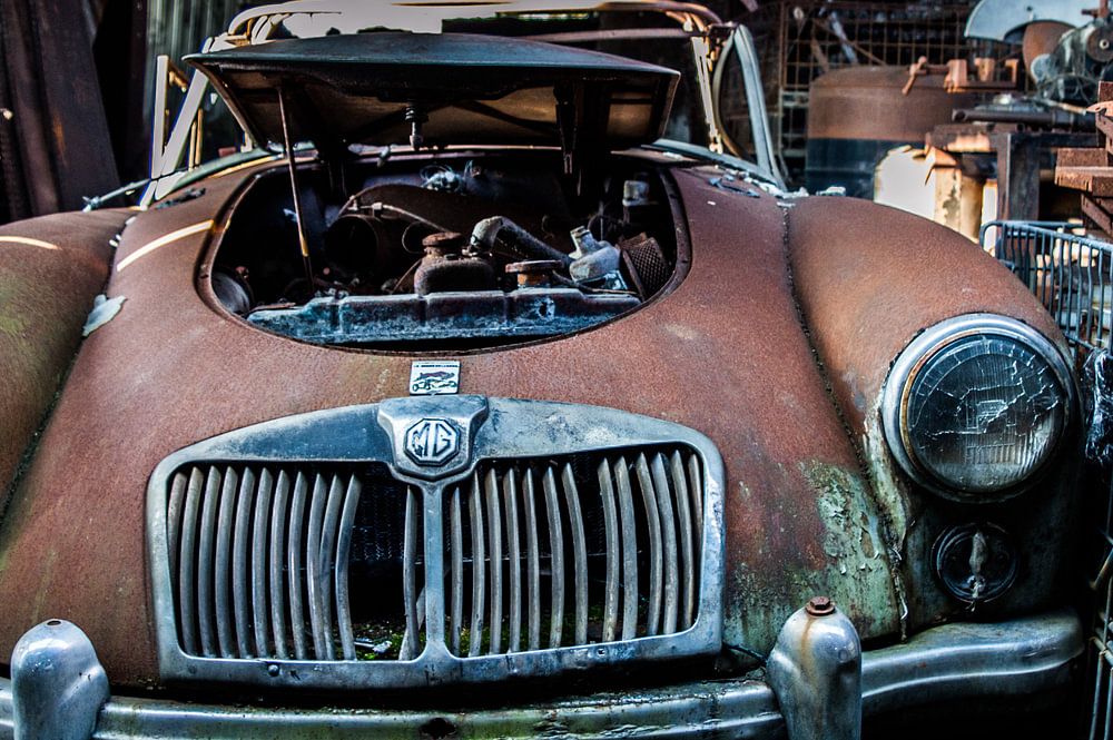 Bestelle das Foto Verrostetes Auto von Evelyn Conings als Reproduktion auf Leinwand, Alu-Dibond, als Poster, Fototapete oder Acrylglasbild.