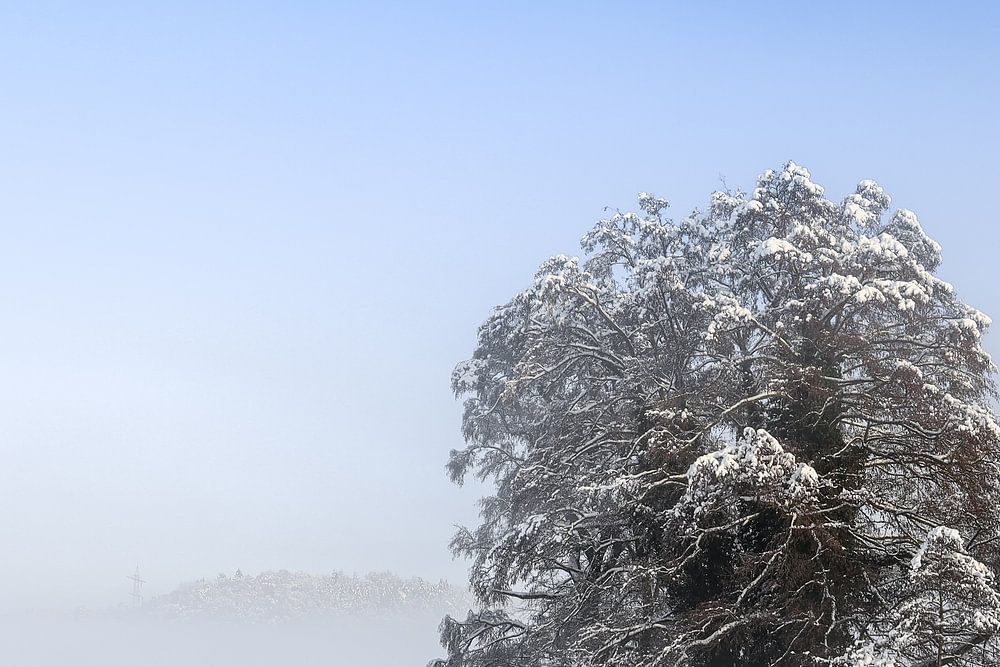 Verschneiter Baum im Nebel bei Stockach im Hegau - Landkreis Konstanz