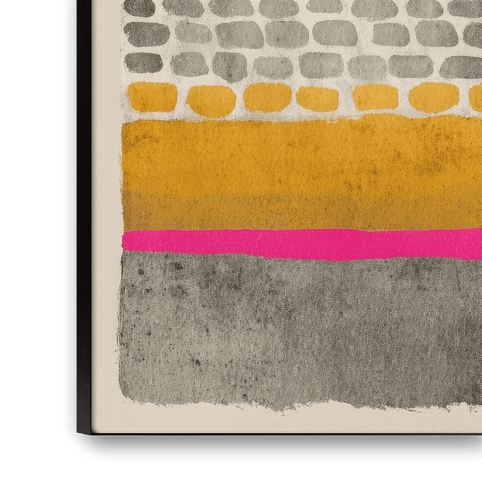 Eine verspielte und moderne abstrakte Komposition, die leuchtende Neon-Akzente mit weichen, erdigen Tönen kombiniert. Organische Formen und subtile Texturen schaffen ein dynamisches, geschichtetes Ganzes, das sofort ins Auge fällt. Dieses Kunstwerk verleiht jedem Raum Farbe, Energie und eine moderne Ausstrahlung: perfekt für Innenräume, die das gewisse Etwas brauchen.