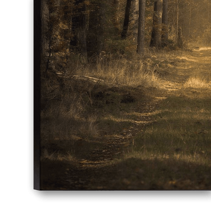 Dieses Waldfoto passt perfekt in ein modernes Interieur, sieht aber auch in ländlichen oder skandinavischen Räumen großartig aus. Ideal für alle, die Naturkunst, warme Herbstfarben und eine ruhige, harmonische Atmosphäre an der Wand lieben.