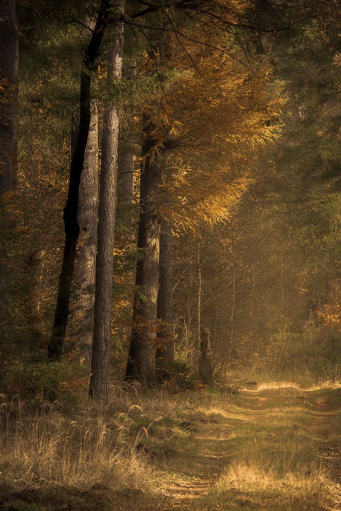 Dieses Kunstwerk zeigt einen verträumten Herbstwald, in dem sich goldene Blätter und tiefe Grüntöne zu einem magischen Waldweg verbinden. Das Bild wurde künstlerisch bearbeitet, um ein Gefühl von Ruhe, Wärme und Staunen hervorzurufen. Das weiche Licht und die subtilen Tiefeneffekte verleihen dem Bild ein fast märchenhaftes Gefühl.