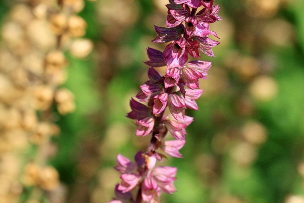 Dekorative verwelkten Blumen von Salbei. Das bekannte Kräuter-Anlage wird seit tausenden von Jahren als Küche und Heilpflanze verwendet.