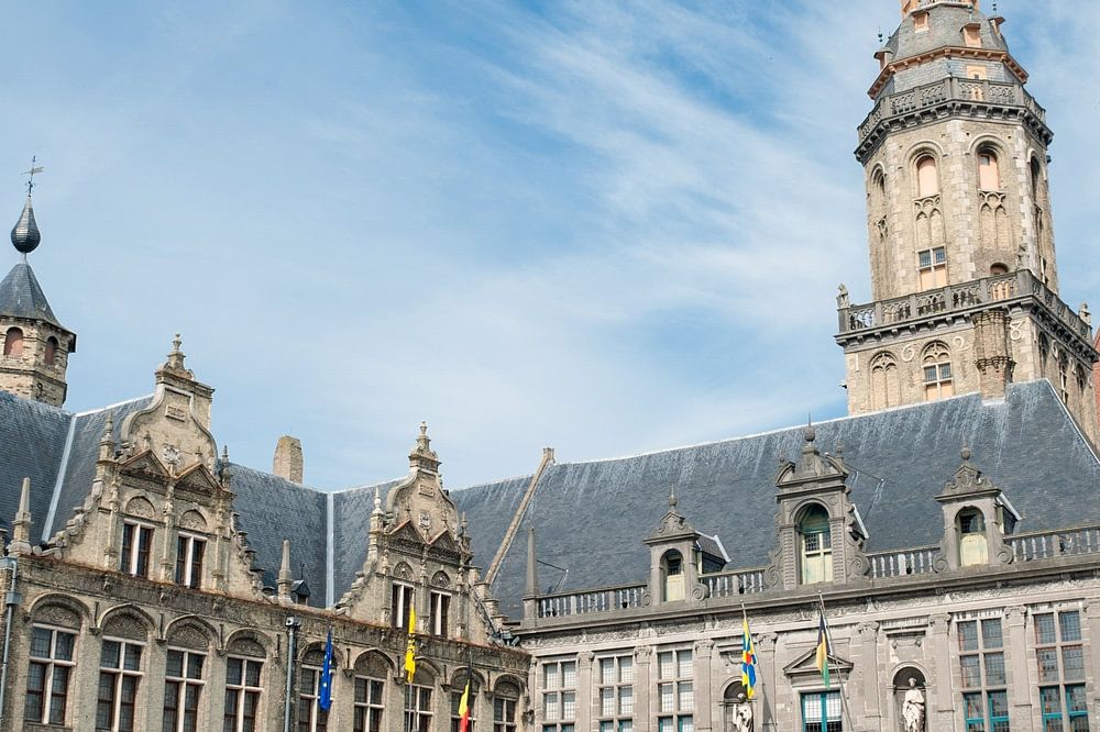 Marktplatz von Veurne Belgien mit Belfried (Belfort) dahinter.