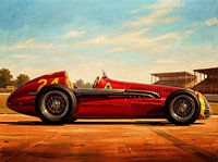 Bestelle diese Malerei Vintage Alfa Romeo Alfetta 1950 Rennwagen-Gemälde von Jan Keteleer als Reproduktion auf Leinwand, Alu-Dibond, als Poster, Fototapete oder Acrylglasbild.
