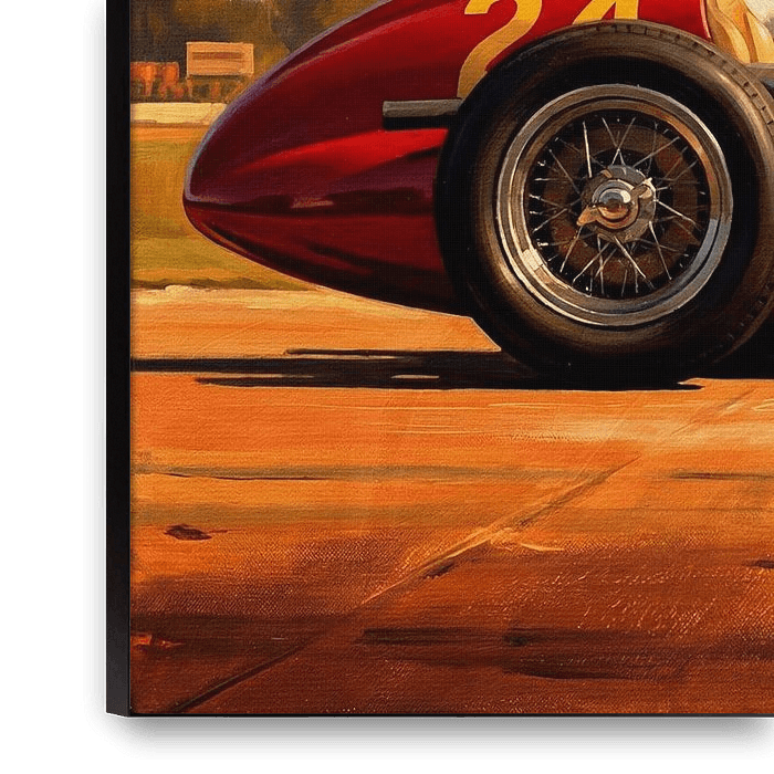 Bestelle diese Malerei Vintage Alfa Romeo Alfetta 1950 Rennwagen-Gemälde von Jan Keteleer als Reproduktion auf Leinwand, Alu-Dibond, als Poster, Fototapete oder Acrylglasbild.