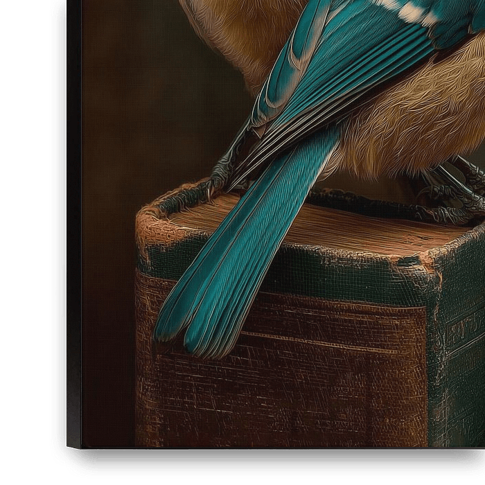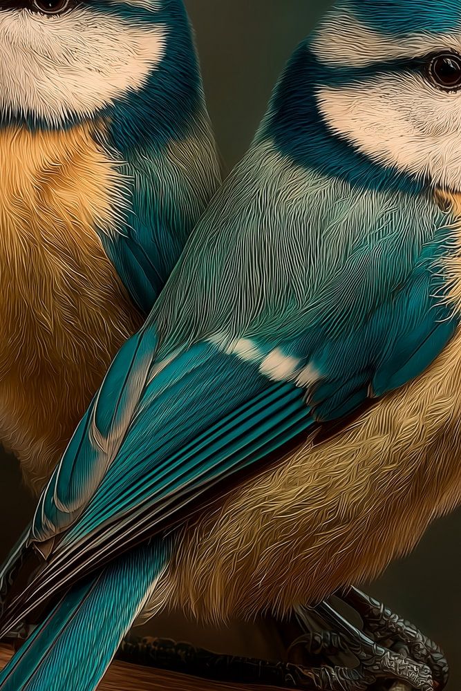 Dieses stimmungsvolle Gemälde zeigt zwei wunderschön dargestellte Blaumeisen, die in einem Moment des Friedens und der Verbundenheit Seite an Seite sitzen. Die satten Blautöne kontrastieren elegant mit der warmen ockergelben Brust, während der weiche Hintergrund die Vögel voll zur Geltung bringt. Die realistischen Details verleihen dem…