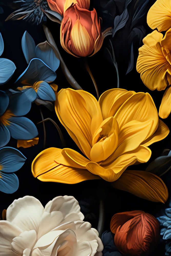 Vintage Blumen in Gelb, Blau und Weiß