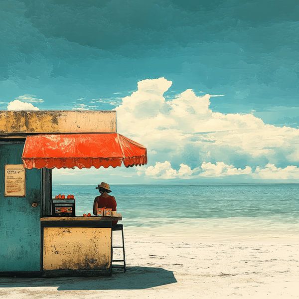 Bestelle das digitale Kunst Bild Vintage Dame Strand von LidyStuit als Reproduktion auf Leinwand, Alu-Dibond, als Poster, Fototapete oder Acrylglasbild.
