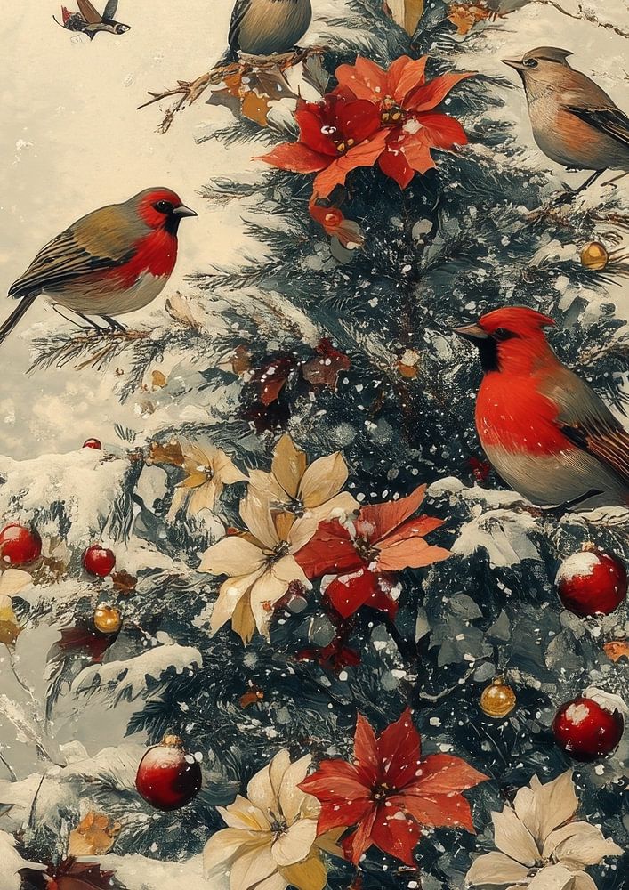 Feiern Sie die Saison mit einem retro-inspirierten Baum, der mit lebhaften Blüten und rustikalen Details geschmückt ist.