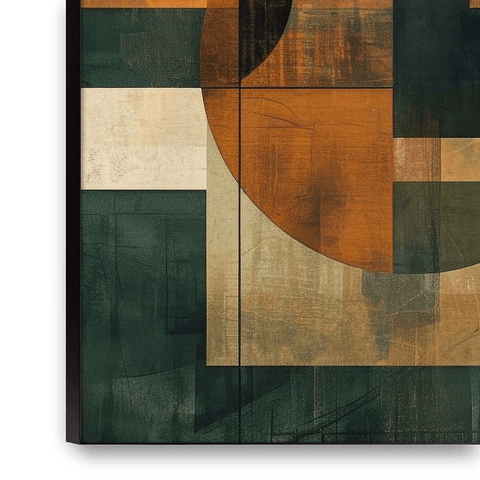 Dieses Kunstwerk besticht durch seine harmonische Kombination aus geometrischen Formen und sanften Erdtönen. Die Mischung aus Kreisen, Rechtecken und Linien schafft ein ausgewogenes, modernes Design mit einem Hauch von Vintage-Ästhetik. Perfekt für Räume, die eine warme und einladende Atmosphäre suchen. Dieses Bild ist ideal für moderne…