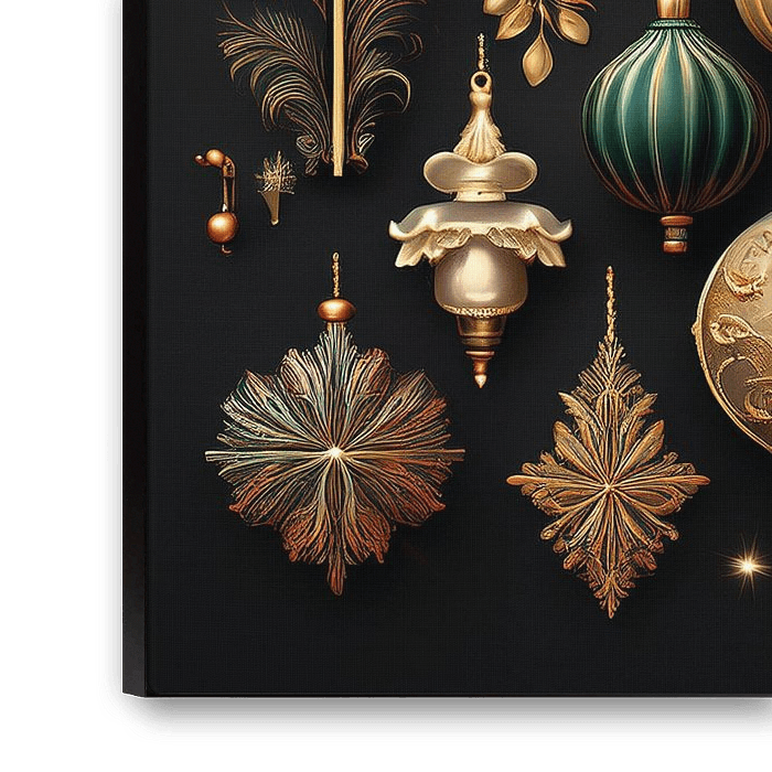 Chic Vintage Weihnachtsschmuck auf einem schwarzen Hintergrund