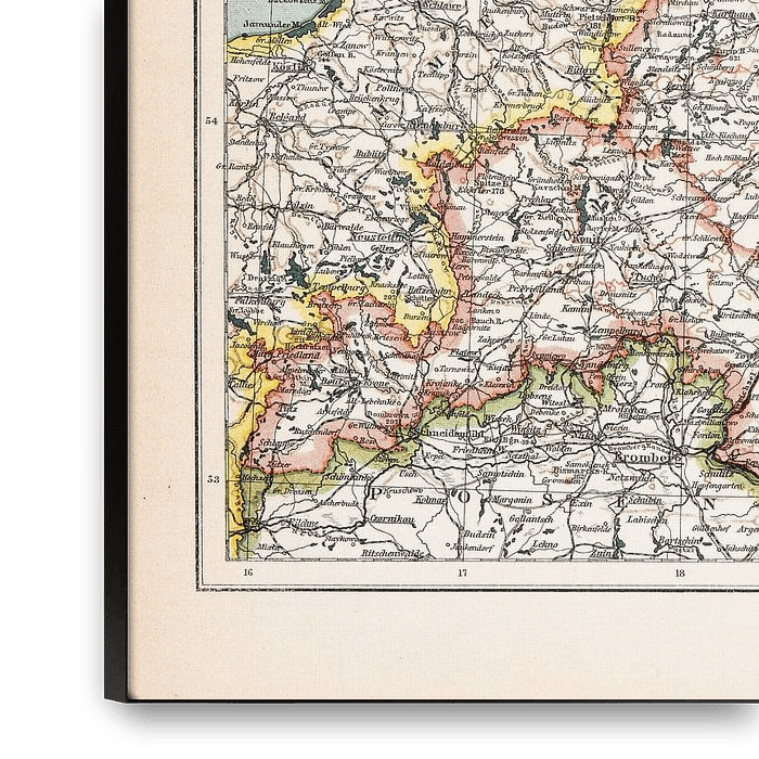 Diese antike Karte aus der Zeit um 1900 zeigt die deutschen Staaten Ost- und Westpreußen. Die Karte ist in Farbe und hat einen Maßstab von 1:750.000.