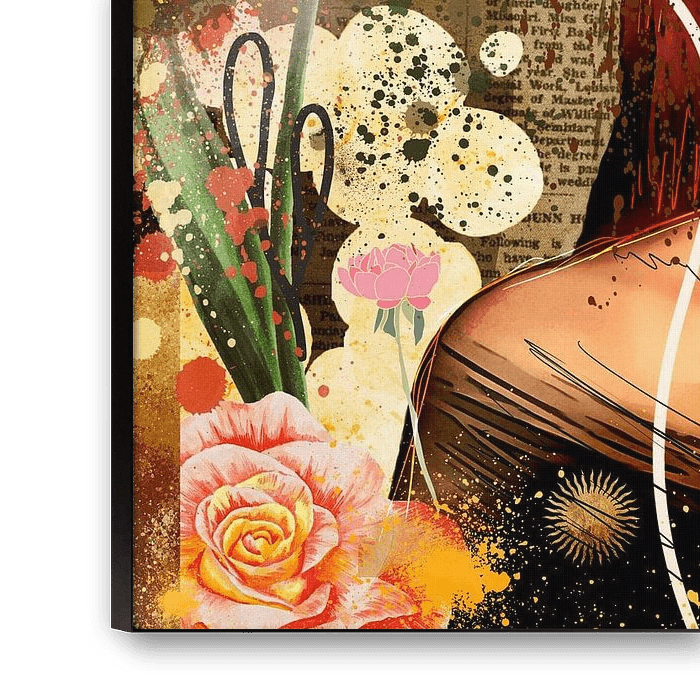 Eine neue Version meines früheren Werks "Vintage Portrait" (Arbeitscode 496904), ist dieses Mixed-Media-Werk, in dem ich verschiedene fotografierte Elemente mit digitalen Maltechniken kombiniert habe. Diesmal habe ich das Porträt in einem eher cartoonhaften Stil gezeichnet und eine grobe Skizze verwendet, um zusätzliche Details hinzuzufügen, was dem Werk mehr Charakter verleiht. Im Hintergrund sind nun viele weitere Details zu sehen, wie z. B. eine alte Zeitung, die den Vintage-Charakter des Bildes noch verstärkt. Auch im Vordergrund wurden mehrere florale Elemente hinzugefügt, die dem Werk ein fröhliches und detailliertes Aussehen verleihen.