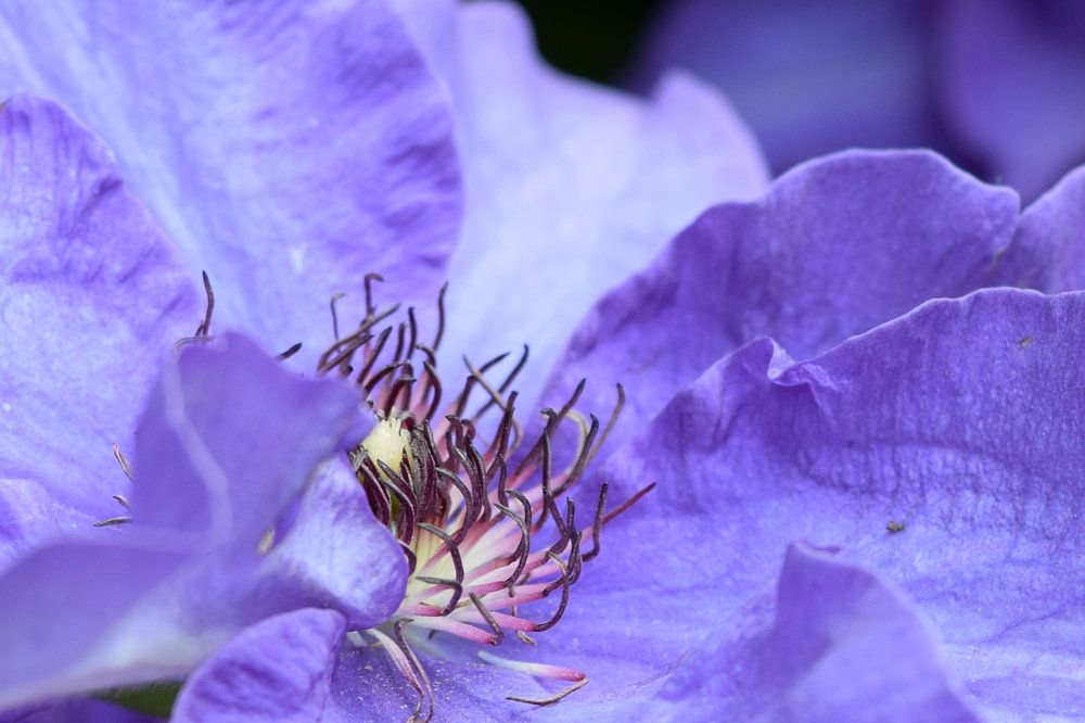 Makrobild einer violetten Blume im Sonnenlicht mit einem violetten natürlichen Hintergrund.