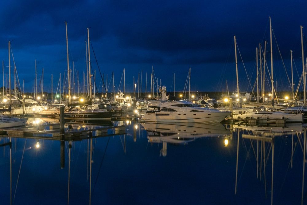 Ich ging am Abend spazieren und sah ein schönes Boot im Wasser und machte ein schönes Foto davon.