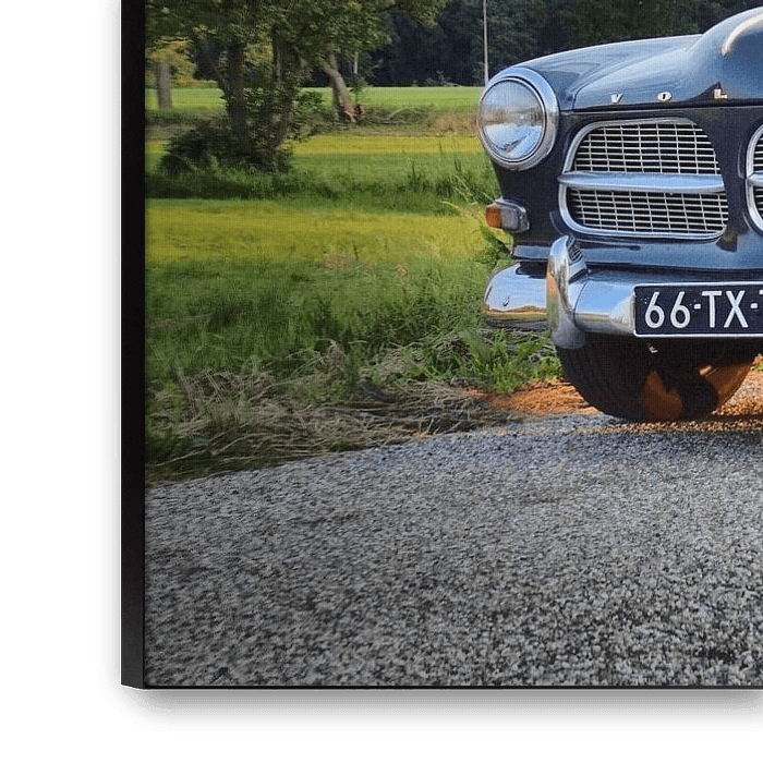 Ein schöner klassischer Volvo Amazon scheint in der Twenter Sommersonne. Dieses Modell stammt aus dem Jahr 1964.