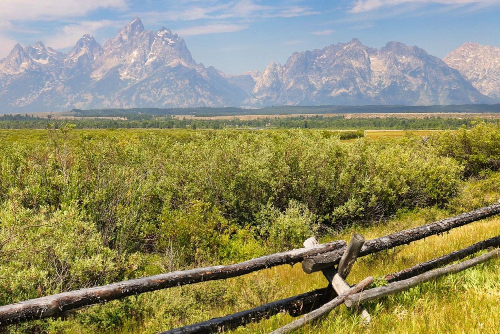 Ebene mit dem Zaun einer Koppel vor den Grand Tetons.