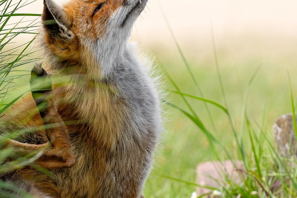 Dieser Fuchs hatte das Bedürfnis, sich hinter seinem Ohr zu kratzen