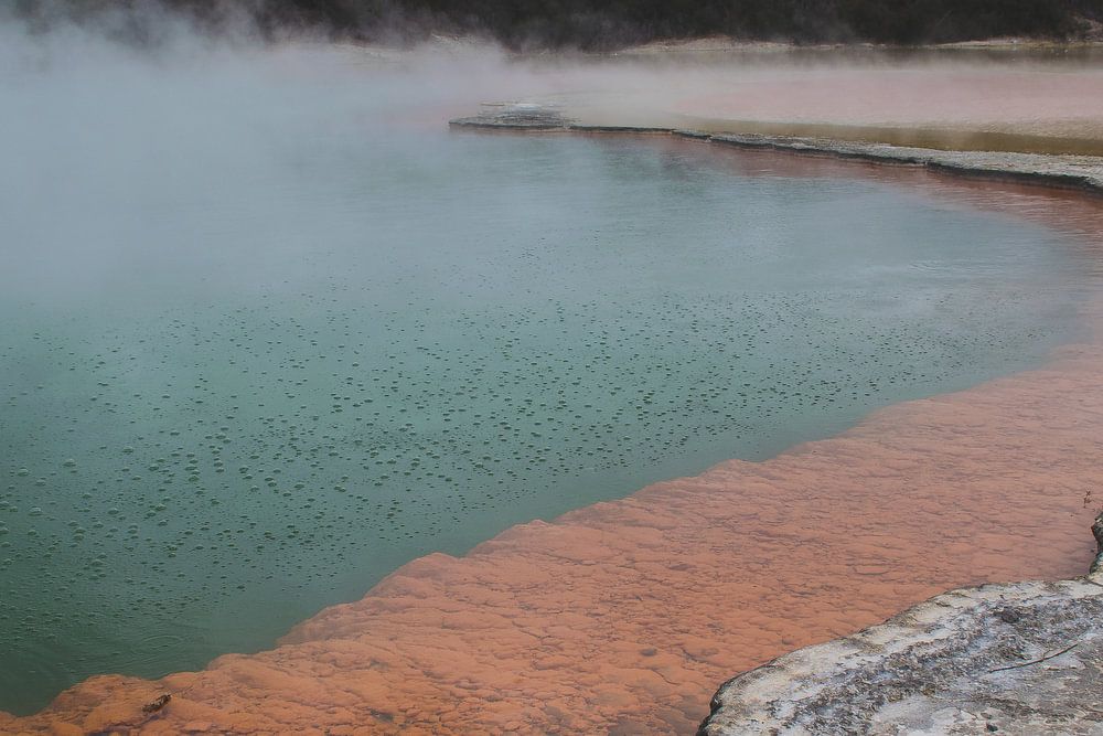 In der Nähe von Rotorua auf der Nordinsel Neuseelands befindet sich das Geothermalgebiet Wai-O-Tapu Thermal Wonderland. Wai-O-Tapu ist Māori für: heilige Gewässer.