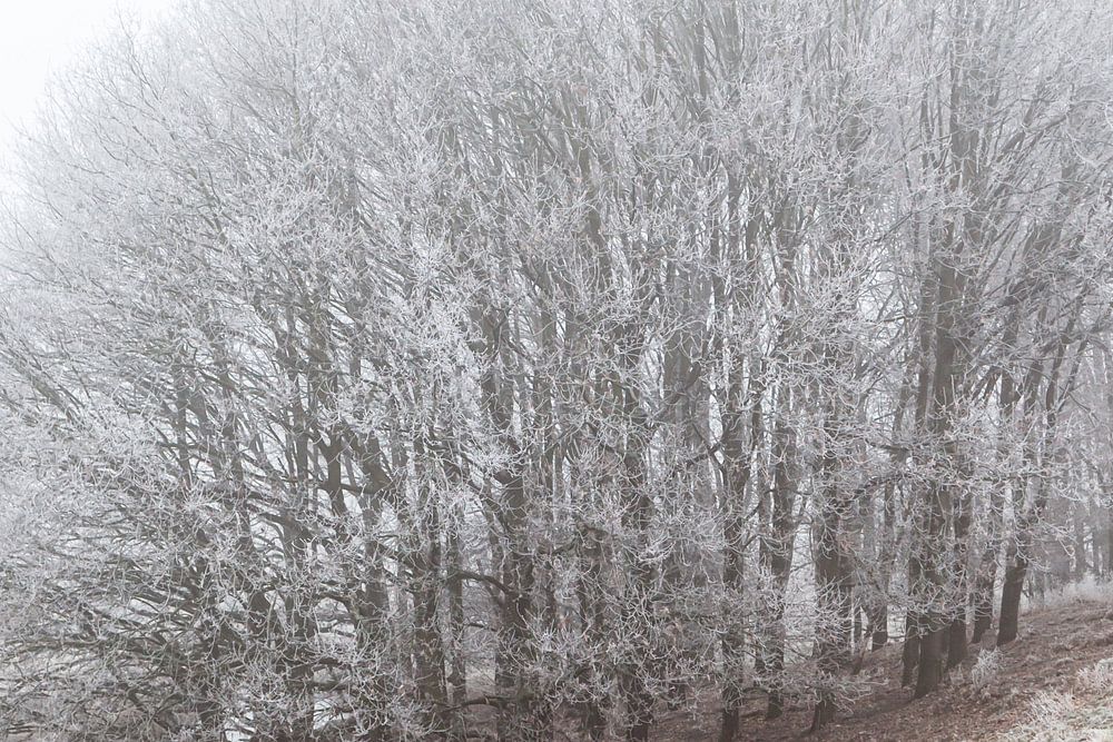 Morgenlicht, ein kalter, in Nebel gehüllter Morgen.