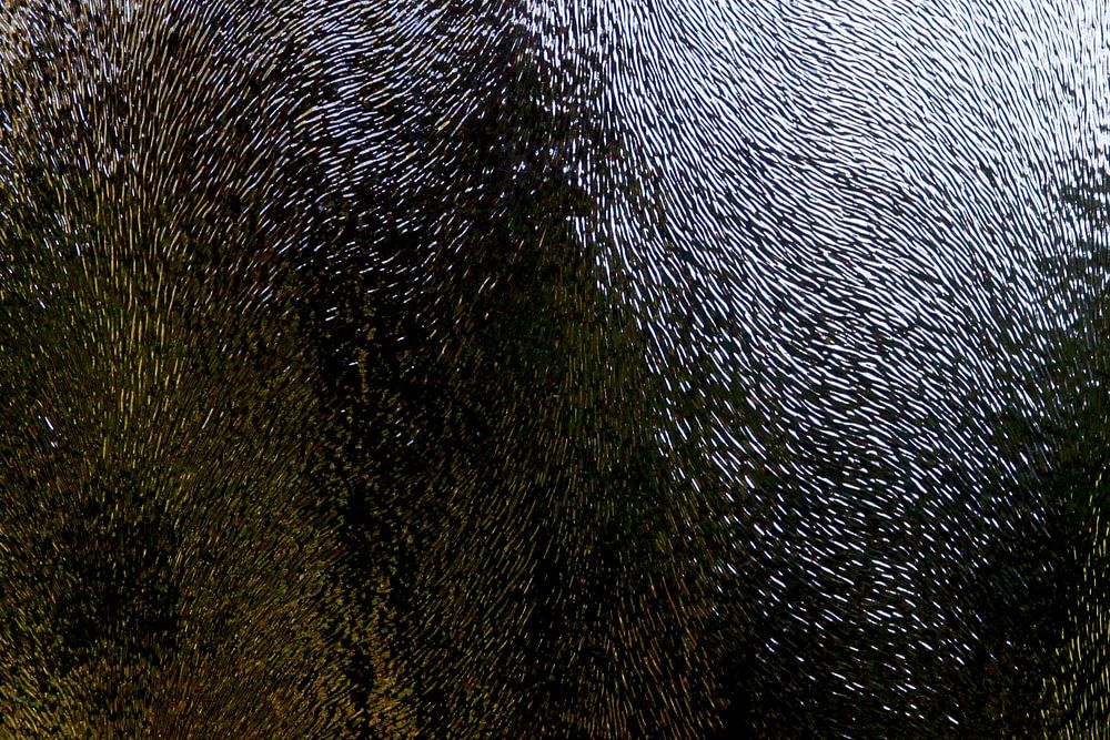 Waldimpression, Bäume durch Glas fotografiert und somit